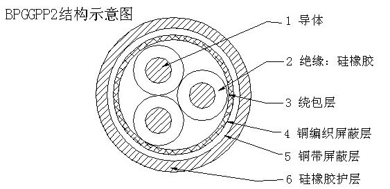 BPGVFPP2 | 硅橡膠絕緣丁腈護套銅絲編織銅帶繞包屏蔽耐高溫變頻電力電纜。 |